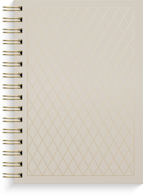 Anteckningsbok med matt beige kartongomslag och diamantmönster i guldfolie. Våra vackert designade anteckningsböcker är skapade i Sverige med fokus på både stil och funktion. Omslaget med elegant guldfolie ger en känsla av struktur och elegans. Innehåller 300 linjerade sidor, perfekt för dina ideér, föreläsningar eller daglig planering.