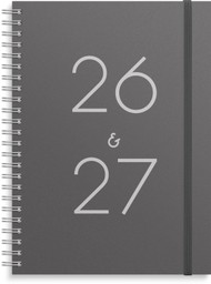 Format: A5. Mått: 215 x 175 x 25 mm. Layout: Vecka/uppslag. Stående. Timindelning 8-17. Kalendarium: 2026-06-15 – 2027-08-01. Omslag: Kartong med struktur. Spiralbunden. Detaljer: Gummiband. Flyttbara plastmarkörer. Pappersficka. Innehåll: Kyrkliga helgdagar, flaggdagar, helgdagar/aftnar, viktiga datum, månfaser, namnsdagar, temadagar/händelser, årsöversikt/årsöversikter, årsplan/årsplaner, kontaktlista, schema. Antal sidor: 224. Miljöinformation: FSC®.
